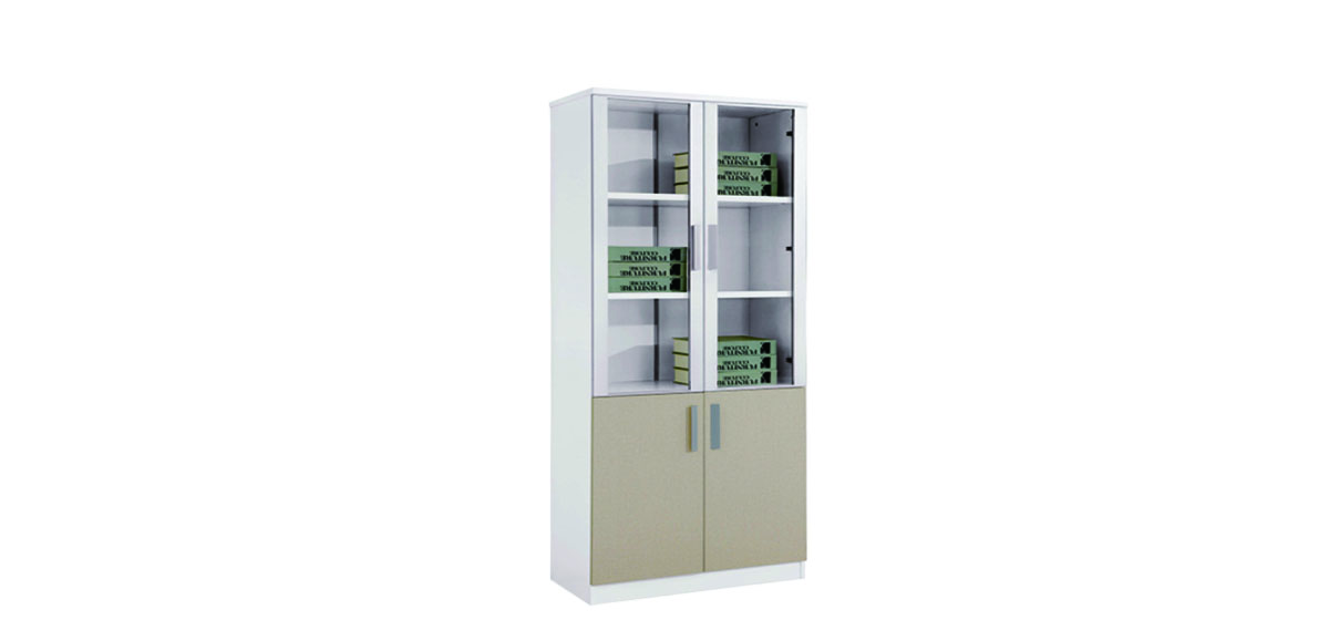 WOODEN FILING CABINET WITH 2 GLASS DOORS